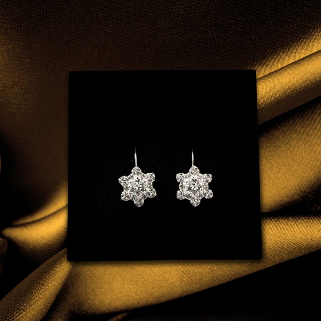 Fülbevaló - csillag mérete 17 x 17 mm, 13 db Swarovski kristállyal kirakva, biztonsági zárral ellátott akasztópánton szállítjuk.
