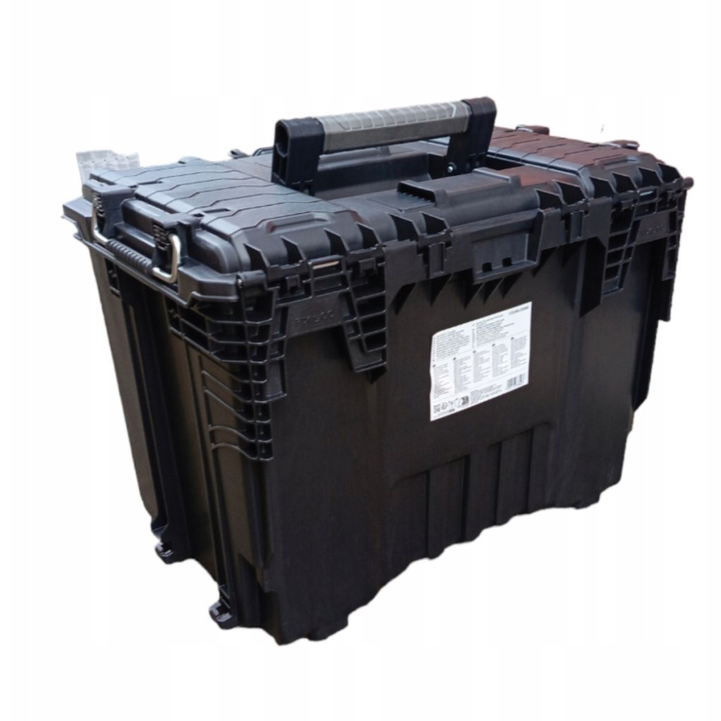 A lefelé nyíló reteszek biztosítják a doboz biztonságos zárását, és megakadályozzák a szállítás közbeni véletlen kinyílást. Az IP65 besorolással ez a doboz por- és vízálló, ami azt jelenti, hogy szerszámai a legzordabb körülmények között is szárazon és biztonságban maradnak. Az ergonomikus oldalsó fogantyúk segítségével kényelmesen és könnyen hordozható, bárhová is kell mennie.