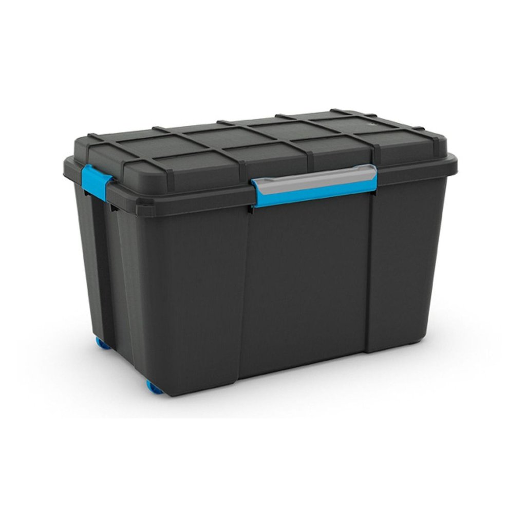 A többfunkciós, extra tartós KIS Scuba Storage Box XL 106 literes térfogattal rendelkezik, és számos dolog tárolásában segít. A doboz kerekekkel van ellátva, hogy még egy teli dobozt is könnyen mozgatni lehessen. Kiváló minőségű és könnyen mosható műanyagból készült, gondtalan karbantartással. Ellenáll az ütéseknek, az alacsony hőmérsékletnek és a savaknak. A fedél négy ergonomikus klipszzárral van ellátva, és hermetikusan lezárt, így nem engedi át a nedvességet. Színe fekete, kék kupakkal.