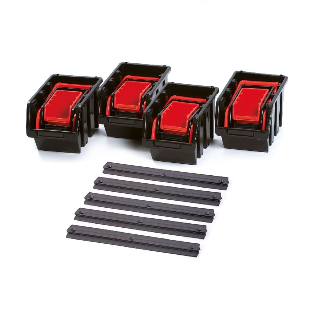 A Kistenberg falra szerelhető szervező 5 sínből és 16 dobozból áll, 4 méretben és 2 színben.