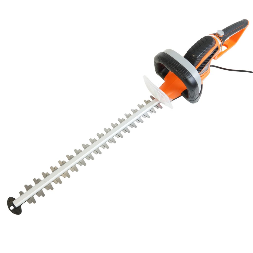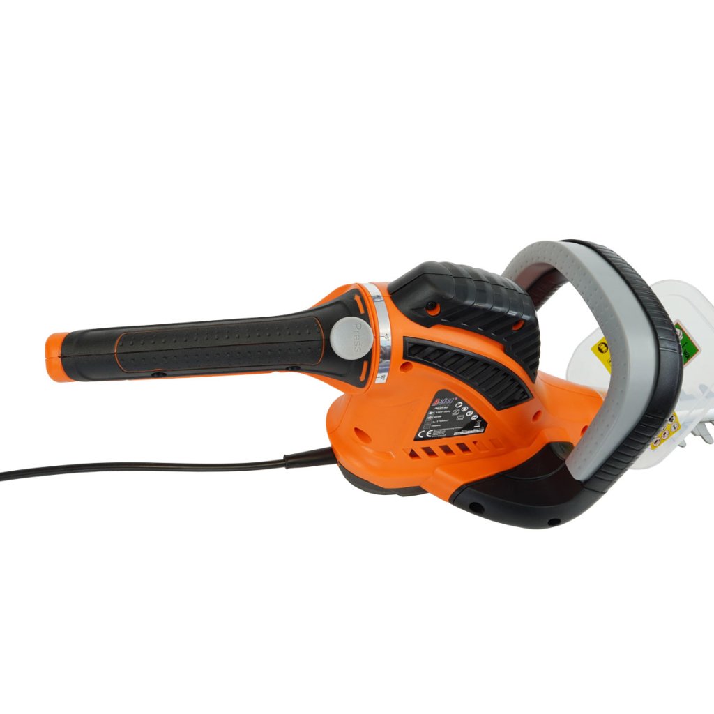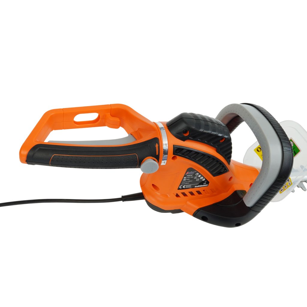 Az elektromos sövényvágó előnye a nagy, 620 W-os bemeneti teljesítmény, a vágási szélesség és a vágási hossz. Az elforgatható és puha fogású markolat megkönnyíti a munkát.