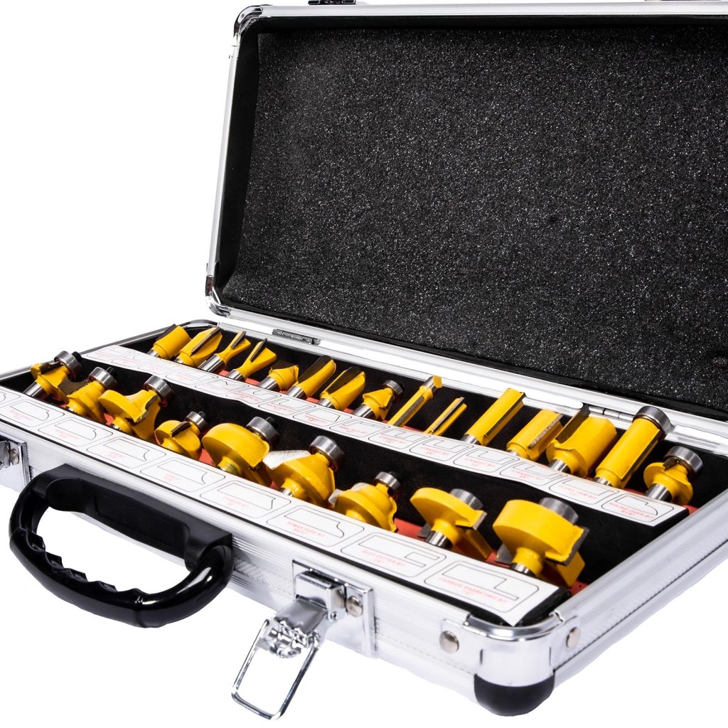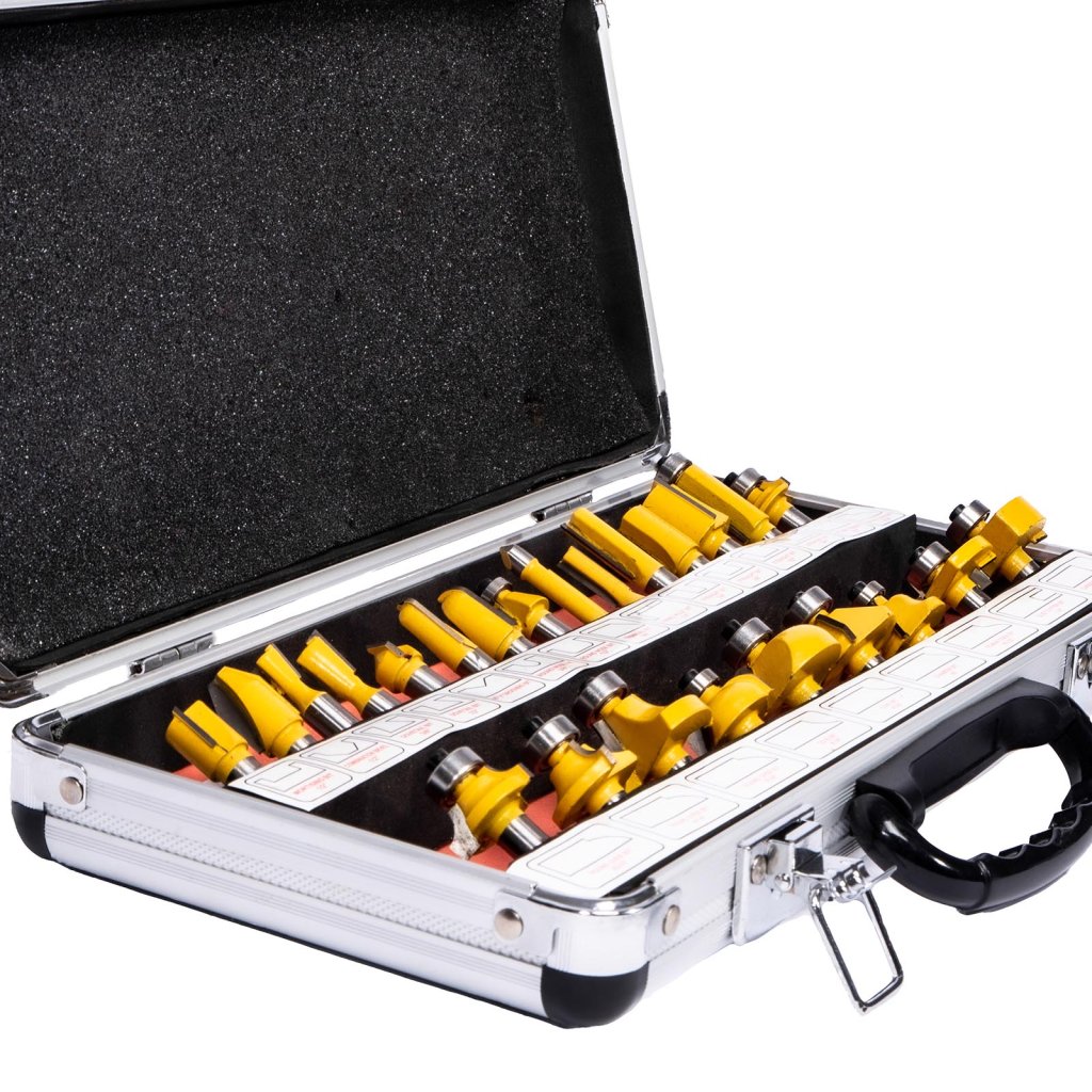 Kemény fém alakú marógépek felső marógépekhez, alumínium tokban, átlátszó tárolóval.