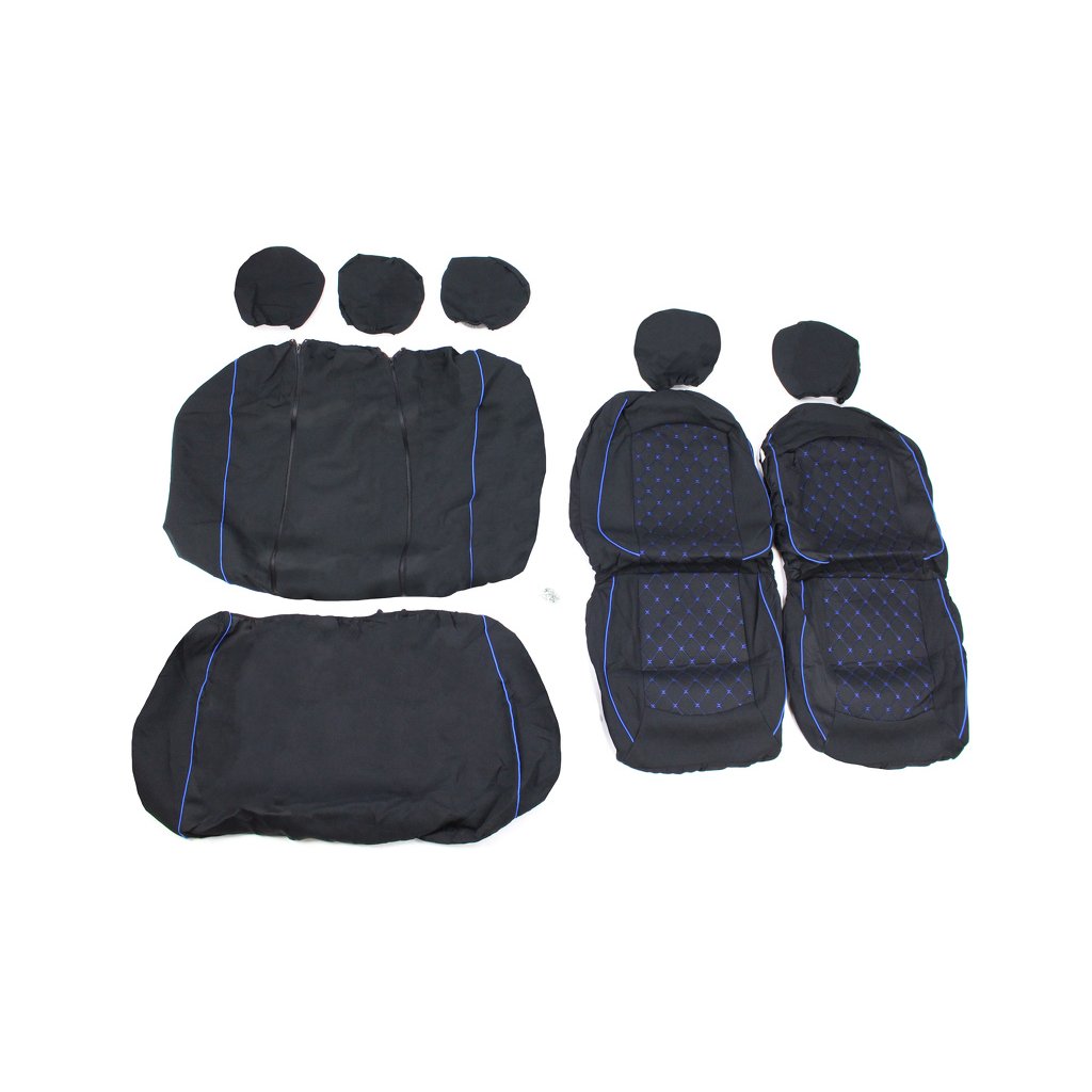 Univerzális autóüléshuzat, poliészter + hab, 5 üléshez való készlet, osztatlan hátsó ülésekkel és mindkét oldalra 1/3 vagy 50/50 arányban osztott ülésekkel rendelkező járművekhez, beleértve a fejtámlákat is, oldallégzsákokhoz jóváhagyott.