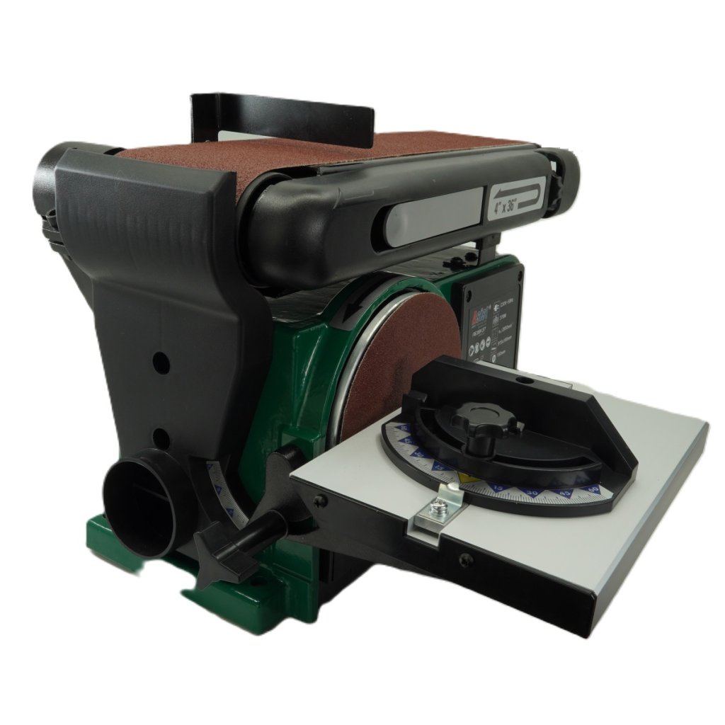 Teljesítmény 370W, csiszolószalag 100x915mm, 150mm csiszolótárcsa, munkaasztal tárcsa mérete: 226*160 mm, szalag sebessége 7,5 m/s, csiszolótárcsa sebessége 2850 min-1, munkaasztal oldalirányú dőlése 0-45°, csiszolószalag dőlésszögének állítása 0-90°