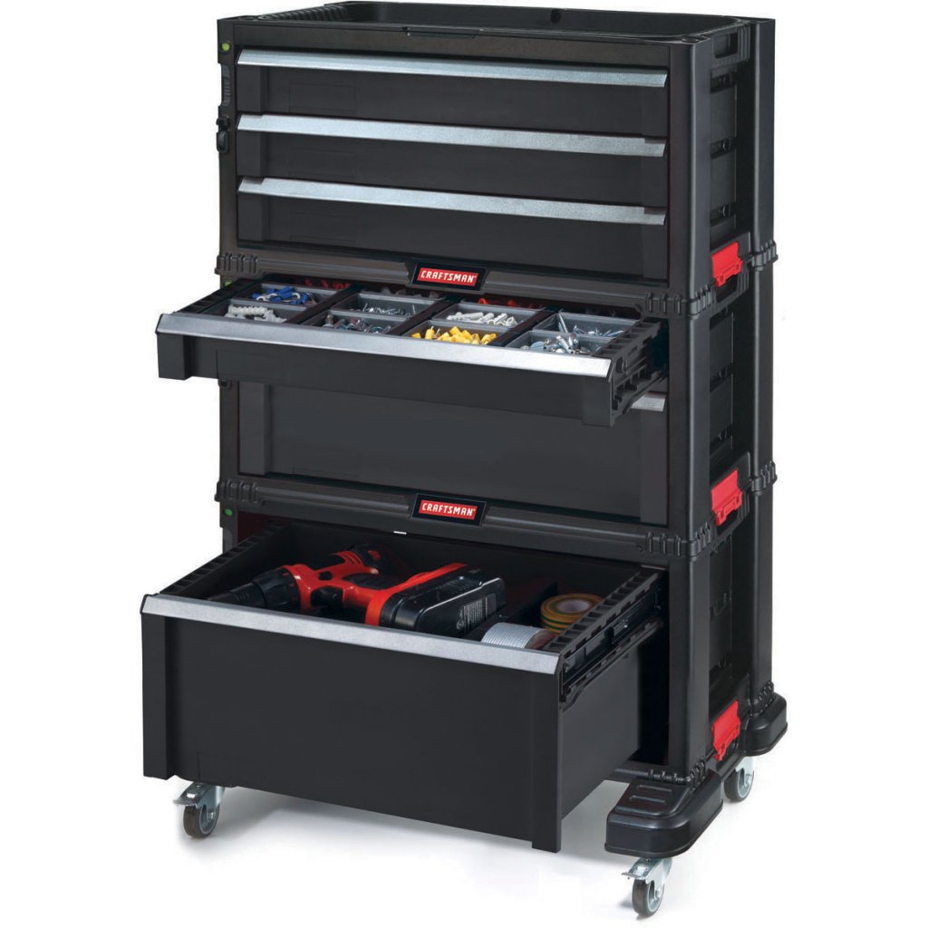 A 6 fiókos szerszámtartó egy mély fiókot tartalmaz a nehezebb szerszámoknak és 5 kisebb fiókot. A görgőknek és a beépített fogantyúknak köszönhetően az állvány könnyen és kényelmesen mozgatható.
