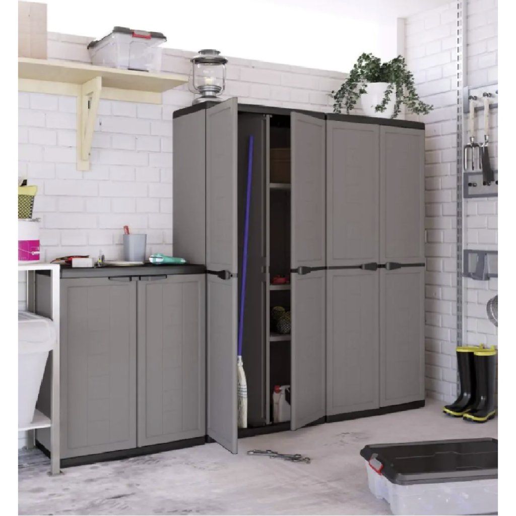A szekrény alkalmas garázsba, pincébe vagy többcélú helyiségbe különböző dolgok rendszerezésére. Összeszerelése 15 perc alatt elvégezhető, és nincs szükség szerszámokra. Belsejében három fél polccal van felszerelve, amelyek variálhatóan állíthatóak. A polcok nélküli második rész seprűk, lapátok és más hasonló jellegű tárgyak tárolására alkalmas. A polcok maximális terhelhetősége 10 kg. A szekrény közepén koncentrált kis fogantyúk szolgálnak a nyitáshoz. Fel van szerelve egy fűzőlyukkal is egy lakat rögzítésére - a tartalom biztosítása érdekében.