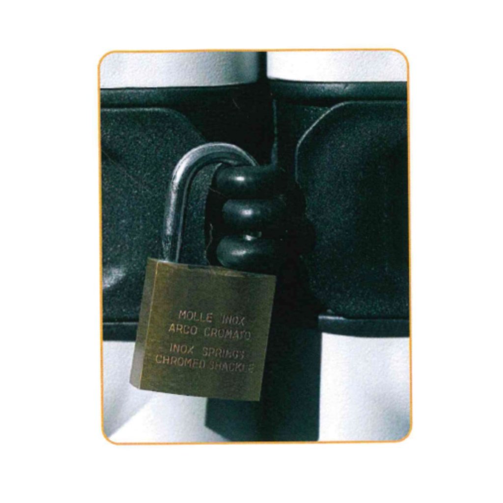 KIT a 70 cm széles CONCERT szekrények zárásához, lakat nélkül szállítjuk. Maximum 6 mm-es bilincsátmérőjű lakattal történő záráshoz alkalmas