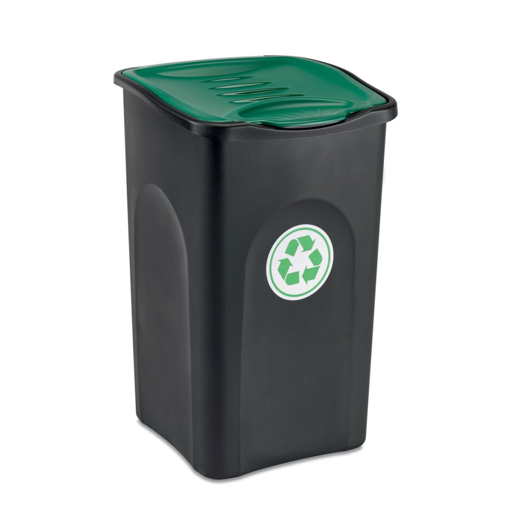 Szelektív hulladékgyűjtő ECOGREEN 50 L, fekete/zöld fedéllel, szelektív hulladékgyűjtéshez