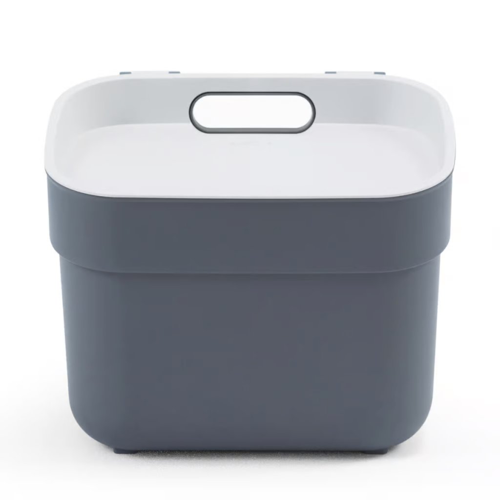 Műanyag READY szürke színű szelektív hulladékgyűjtő, praktikus használatra, középen nyíló egyenes fedéllel, opcionális falikonzol a kuka felakasztásához mellékelve. Kombinálható az azonos termékcsaládból származó kisebb szemetesekkel. Térfogat 5L, 18,5 x 25 x 20,5 cm.