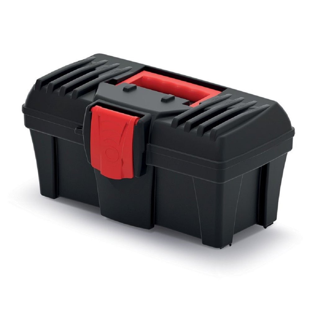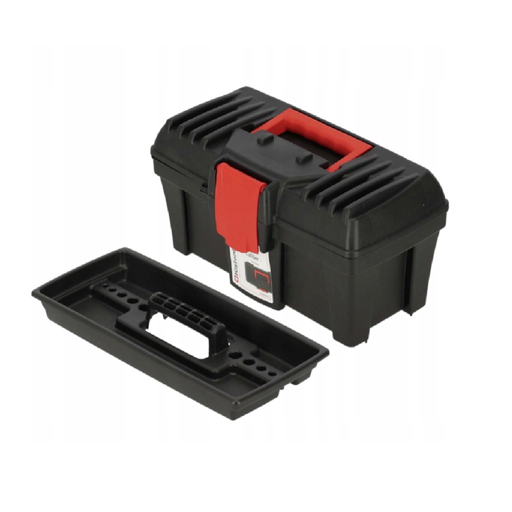 Kézben tartott hordozható szerszámtáska. Különböző szerszámok és tartozékok, például fogók, kalapácsok, reszelők, csavarhúzók stb. tárolására szolgál. Ha kinyitja a fedelet, egy hordozható tálcát talál. A táska műanyag fogantyúval van ellátva, hogy könnyen hordozható legyen. A fogantyú és a biztonságos zárást biztosító klipsz piros színű.