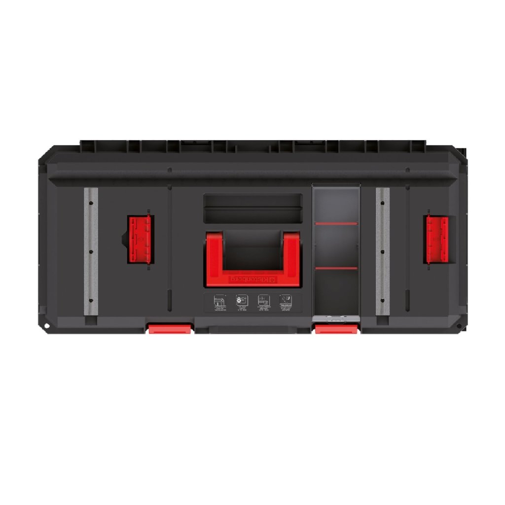 Az alapvető jellemzők: * Tartós szerkezet 50 kg-ig, nyomás alatt pedig 120 kg-ig terjedő teherbírással. *Alumínium sínek, amelyek lehetővé teszik az ácskapcsok felszerelését, így a doboz egy kompakt "munkapaddá" válik. *tömítés biztosítja a por- és vízállóságot *átlátszó szervező a fedélben *2 fogantyú a könnyű szállításhoz *Méretek 79,5 x 38 x 30,7 cm *teleszkópos fogantyú *belső elválasztók