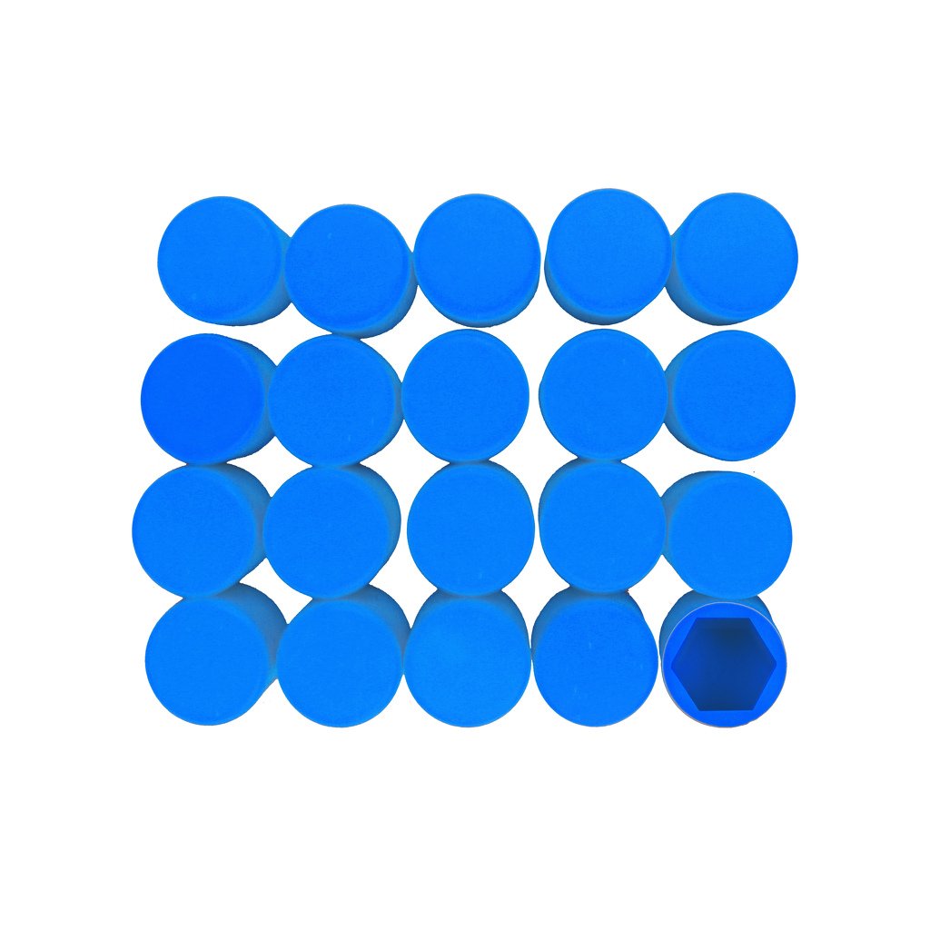 Dekoratív szilikon anya- vagy csavarborítók, 20 db, szilikon anyagból, 6 oldalú, kék színű.