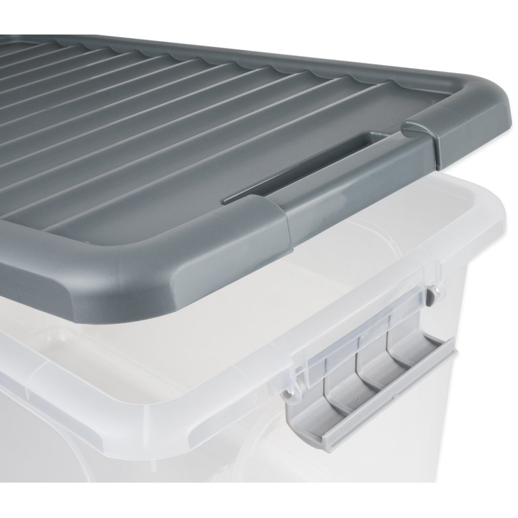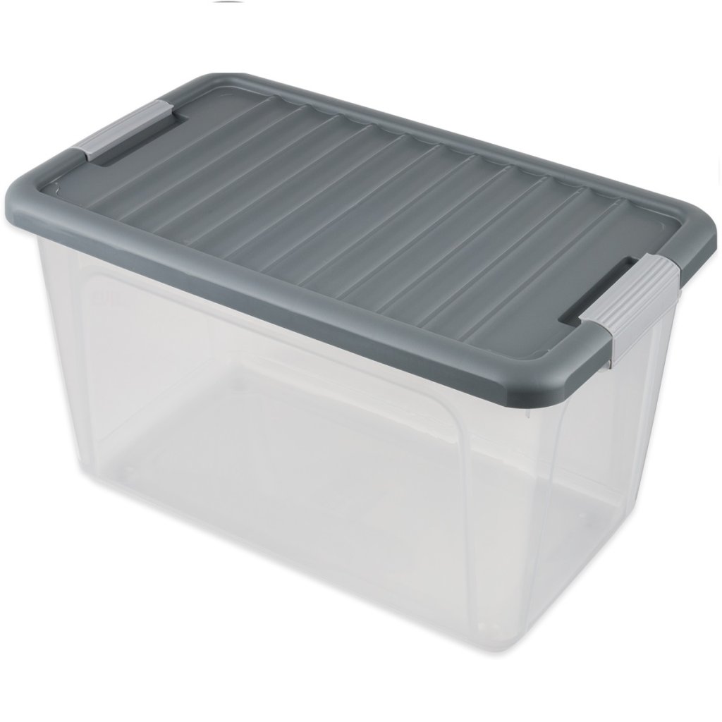 A W BOX M tárolódoboz ideális megoldás ruhák, játékok vagy egyéb tárgyak tárolására, otthoni vagy irodai használatra egyaránt alkalmas, az átlátszó kialakítás folyamatos áttekintést biztosít a tartalomról, az oldalsó kapcsok szilárdan tartják a fedelet és védik a tartalmat a nedvességtől, portól...