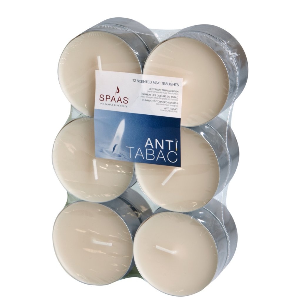 *típus: tealámpás gyertya MAXI *átmérő: 5,6 cm *íz: anti-tabak *szín: fehér *darabszám: 12