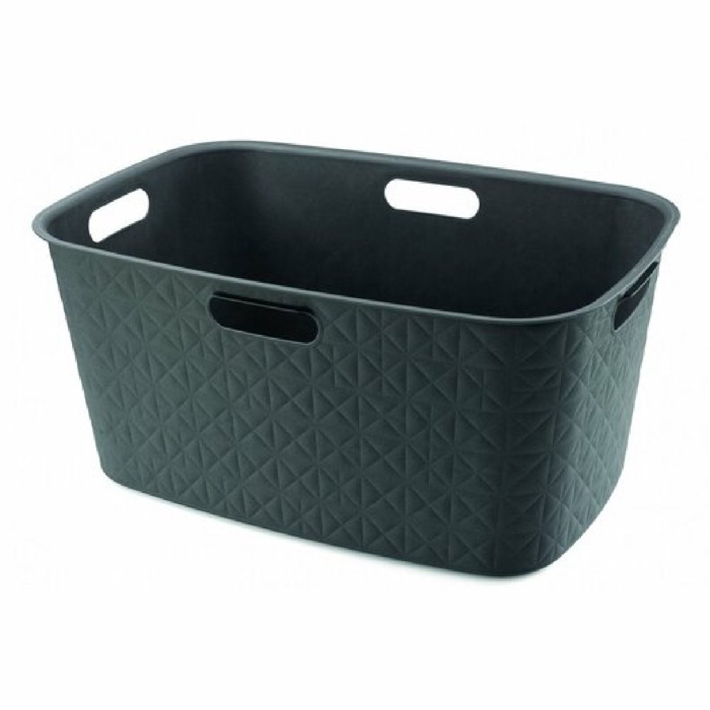 Mosókosár LAUNDRY HAMPER 45 literes űrtartalommal, a szövés és a steppelés technikái által inspirálva, egyszerre stílusos és praktikus, 70%-ban újrahasznosított műanyagból készült, kényelmes fogantyúkkal a könnyű kezelhetőségért. Méretek: 59,4 x 39,7 x 27,4 cm (b x t x h).