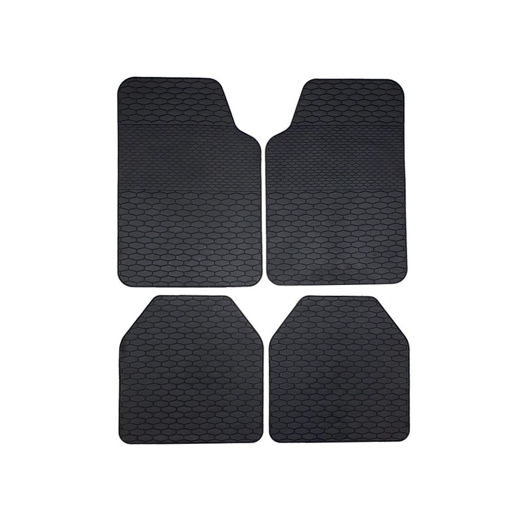 4 darabos szőnyegkészlet az egész járműre. Ezek a gumi autószőnyegek a precíziós autószőnyegek olcsóbb változata, szinte minden járműhöz alkalmasak. A magas perem megvédi a belső teret a szennyeződésektől. A szőnyeg felülete csúszásmentes és vízálló. Az innovatív kialakításnak köszönhetően nem folyik ki nem kívánt víz. Méretek Hátul: Magasság - 48 cm Szélesség - 47 cm Elöl: magasság - 68,5 cm Szélesség - 46,5 cm