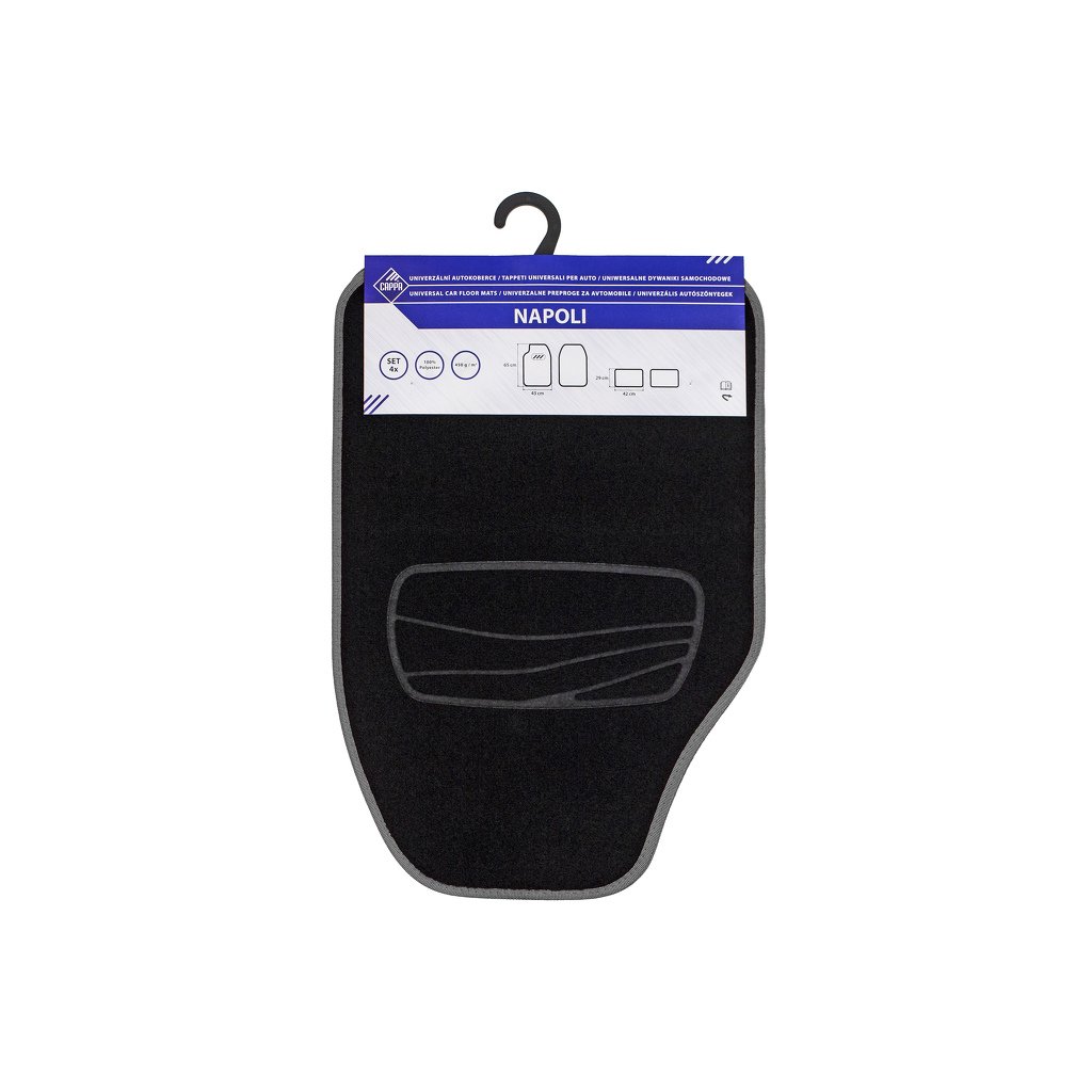 Universal NAP LI textil autószőnyegek szürke színben. A szőnyegek 4 darabos kiszerelésben érkeznek, és a legtöbb személygépkocsihoz illeszkednek. A szőnyegek nagyon könnyen karbantarthatók, és vízzel és a szokásos tisztítószerekkel könnyen tisztíthatók.