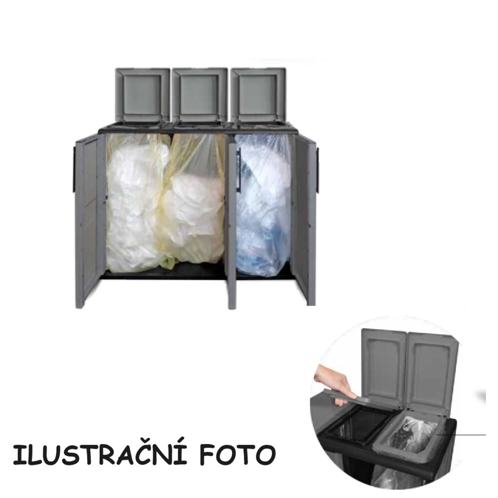 Szekrény szelektált hulladékok számára, 2x ajtó + 3x fedél, FREE ECO sorozat - minőségi újrahasznosítható polipropilén, méret 68 x 37 x 84 cm, időjárás- és hőmérsékletálló, acél zsanérok, stabil és kompakt szerkezet,