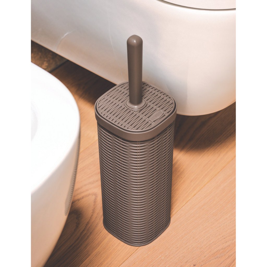 Stílusos és praktikus WC-kefe, ideális minden fürdőszobába. Kiváló minőségű műanyagból készült, stabil fogantyúval és kompakt, zárt állvánnyal rendelkezik, amely biztosítja a kefe higiénikus tárolását. A lágy színekben pompázó modern dizájn illeszkedik az Elegance termékcsalád többi tartozékához. A kefe könnyen mosható, nedvességálló, és tökéletesen illeszkedik a modern és klasszikus fürdőszobai enteriőrökbe egyaránt.