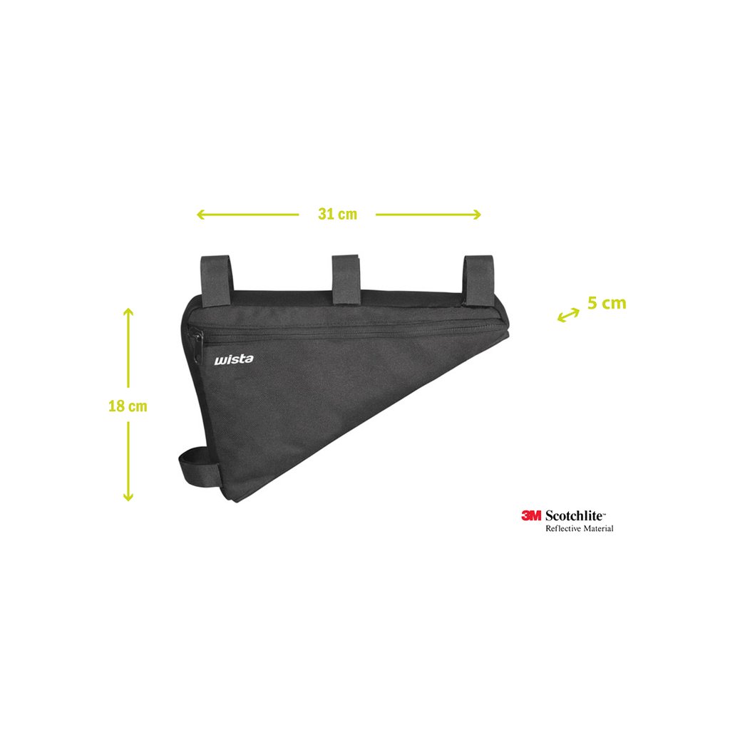 A WISTA váz táska egy praktikus és kiváló minőségű kerékpárváz táska, amelyben utazása során tárolhatja holmiját. A táska vízlepergető anyagból készült. Műszaki leírás: A csomagtáska a csomagtartóban található: WISTA kerékpárváz táska térfogat 1,4 l vízlepergető könnyű és tartós konstrukció méret 31 x 18 x 5 cm