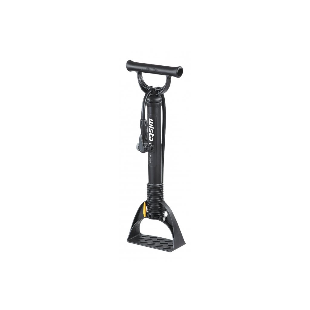 A WISTA lábpumpa ideális a felfújáshoz minden típusú kerékpárszelephez. A szivattyú további adaptereket is tartalmaz, egy tűt matracok, labdák, medencék felfújásához, és második adapterként egy műanyag szűkítő. A gömbölyű lábtartó és az ergonomikus fogantyú igazán könnyűvé teszi a használatát. A 160 PSI/11 BAR maximális nyomással és 51 cm-es magassággal ez a pumpa nem hiányozhat egyetlen műhelyből vagy otthonról sem. Anyag: A szivattyú a következő anyagból készült: A szivattyú a következő anyagból készült: Anyag: edzett műanyag Műszaki leírás: A szivattyú nem tartalmaz egy darabot sem: maximális nyomás 160PSI/11 BAR megfordítható fej minden típusú szelephez AV (automatikus szelep), DV (klasszikus), FV (galusszelep) szelepekhez tartalmazza a golyók stb. felfújásához szükséges tűt és a műanyag szűkítőt is. Ergonomikusan formázott fogantyú kétoldalas lábtartó kar a fej szelephez való rögzítéséhez alkalmas műhelyben vagy otthoni használatra magasság 51 cm súly 1 kg