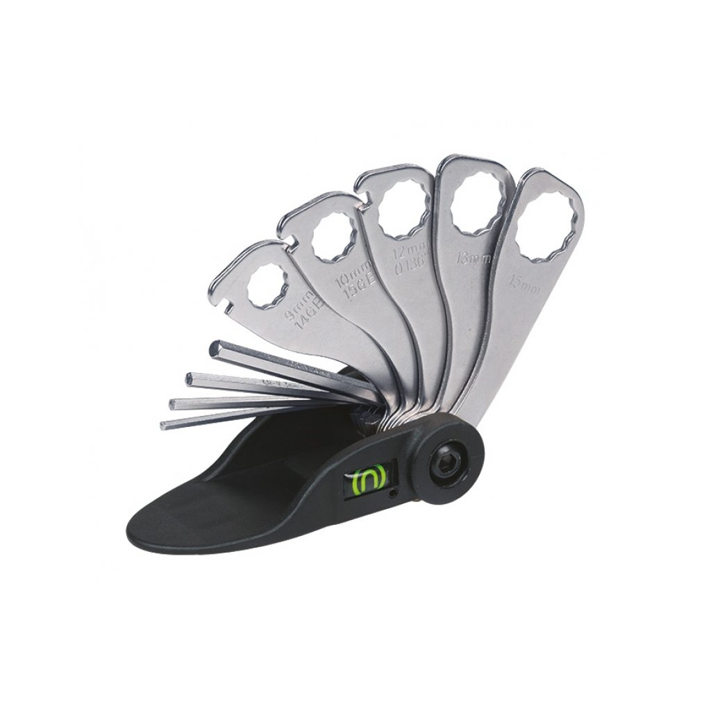 A WISTA multifunkciós kerékpáros szerszámkészlet egy nagyon praktikus és sokoldalú készlet a kerékpárosok legfontosabb szerszámaiból. Tizenhét praktikus funkciót kínál. A készlet tartalmaz egy 2|2,5|3|4|5|6 mm-es imbuszkulcsot, egy praktikus lapos és Phillips csavarhúzót, egy 8 mm-es dugókulcsot, egy 9|10|12|13|15 mm-es laposkulcsot és egy 14G|15G|0,136" középső csavarkulcsot. A szerszámok kiváló minőségű edzett acélból készültek. Nagy előnye a kis kompakt méret. Anyag: A szerszámok a következőkből készülnek: 1: Szerszám: edzett acél 17 funkció 2|2,5|3|4|5|6 mm-es imbuszcsavarok csavarhúzók +|- 8 mm-es dugókulcs 9|10|12|13|15 mm-es laposkulcsok 14G|15G|0,136" dugókulcsok kis kompakt méret súly 230 g