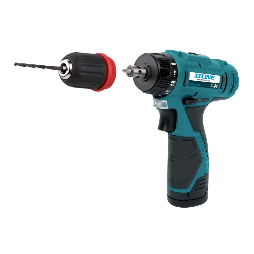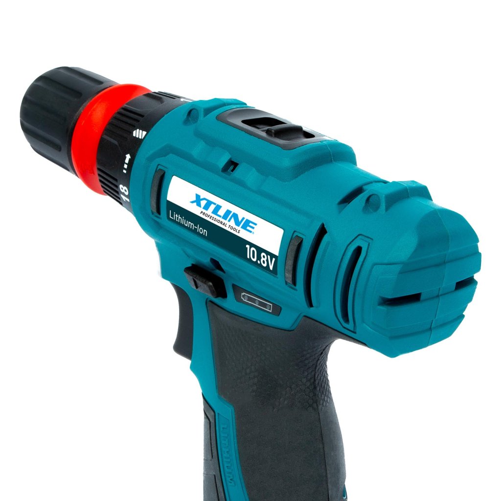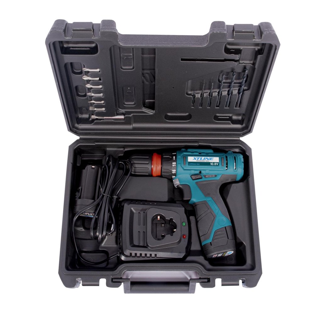 XTLINE Akkus fúrógép 10,8 V, 25 Nm + 2 db 2.0 Ah akkumulátor + tartozékok 13 db alkatrész
