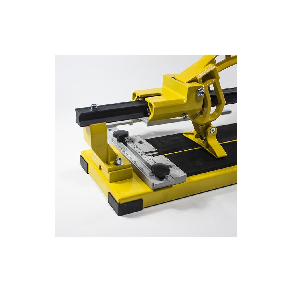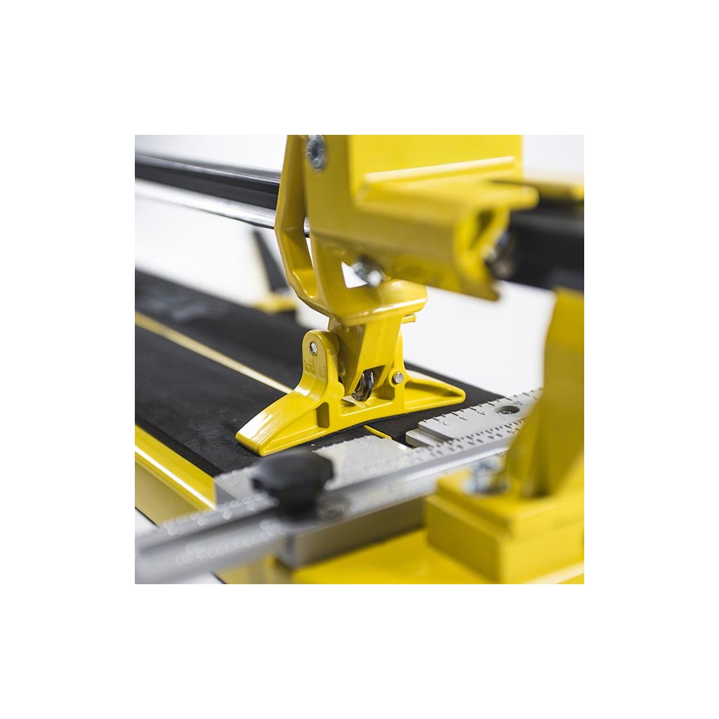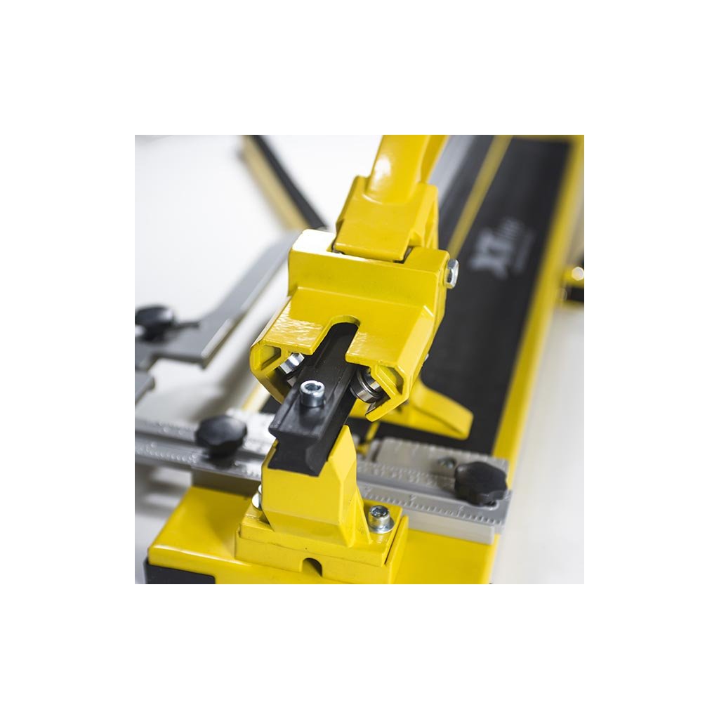 Masszív csempevágó. Fémházban elhelyezett csapágyak a pontos és könnyű vágás érdekében. A működés okozta holtjáték állítócsavarokkal állítható. Szögmérő a pontos szögvágáshoz. A karos törő lehetővé teszi a csempék könnyű törését.