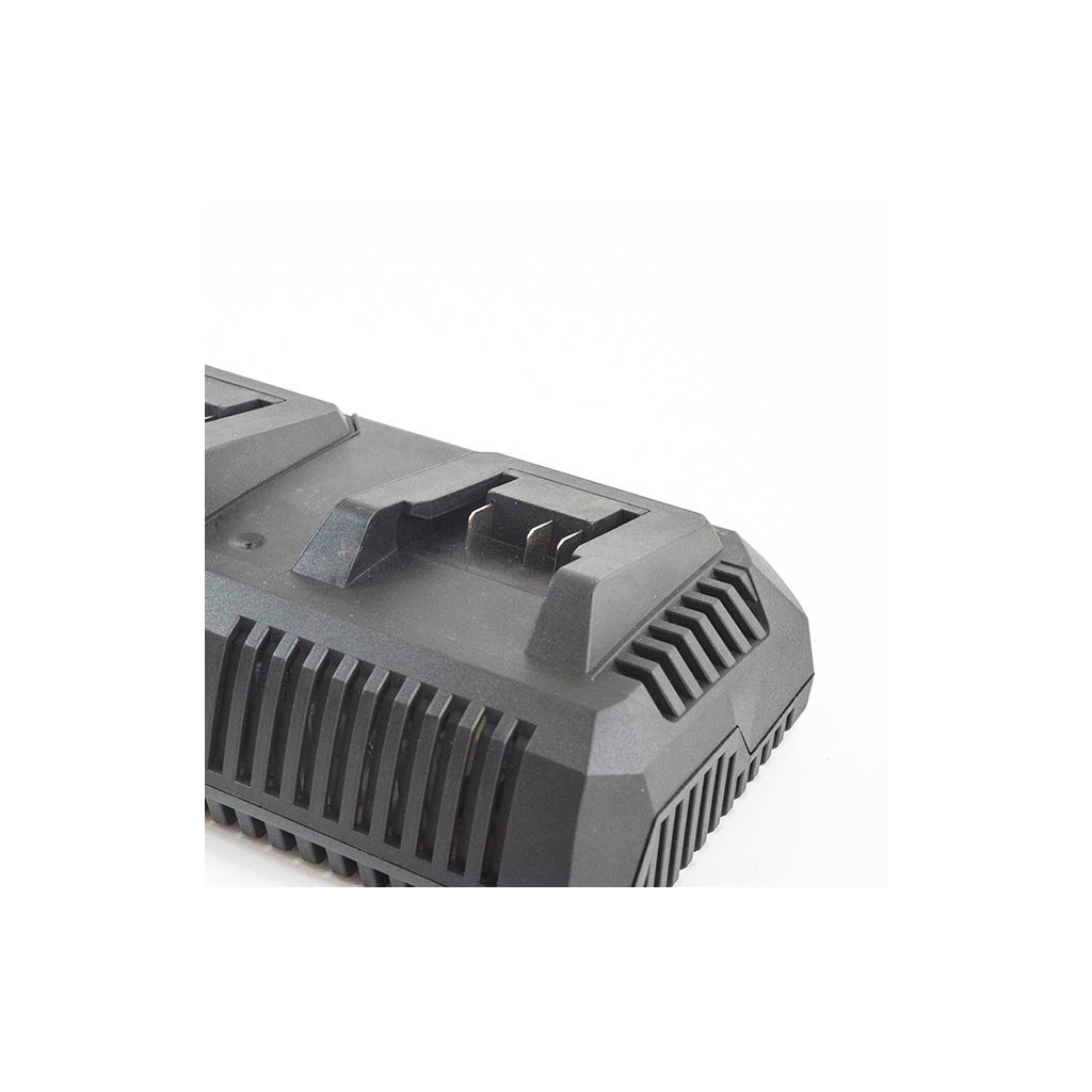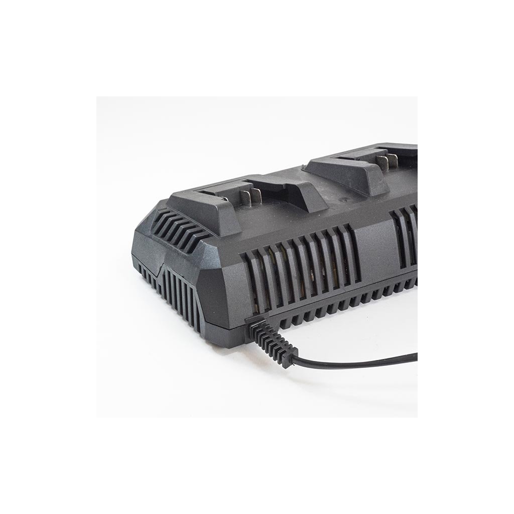 A töltő Li-ion 2.0, 4.0, 5.0 Ah akkumulátorok töltésére szolgál. A töltő előnye, hogy egyszerre 2x akkumulátorok töltése lehetséges. A 2x4Ah cellák maximális töltési ideje legfeljebb 1 óra.